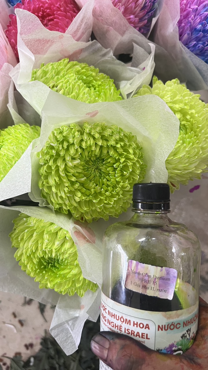 Thực tế, Thuốc Màu Nhuộm Hoa Tươi Xanh Cốm hay Xanh Lá Chuối Non thuộc dòng màu nhuộm hoa cúc được nhiều người yêu thích và nằm trong TOP mã màu bán chạy nhất. Đặc biệt, tại thị trường hoa tươi Hà Nội