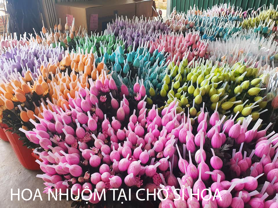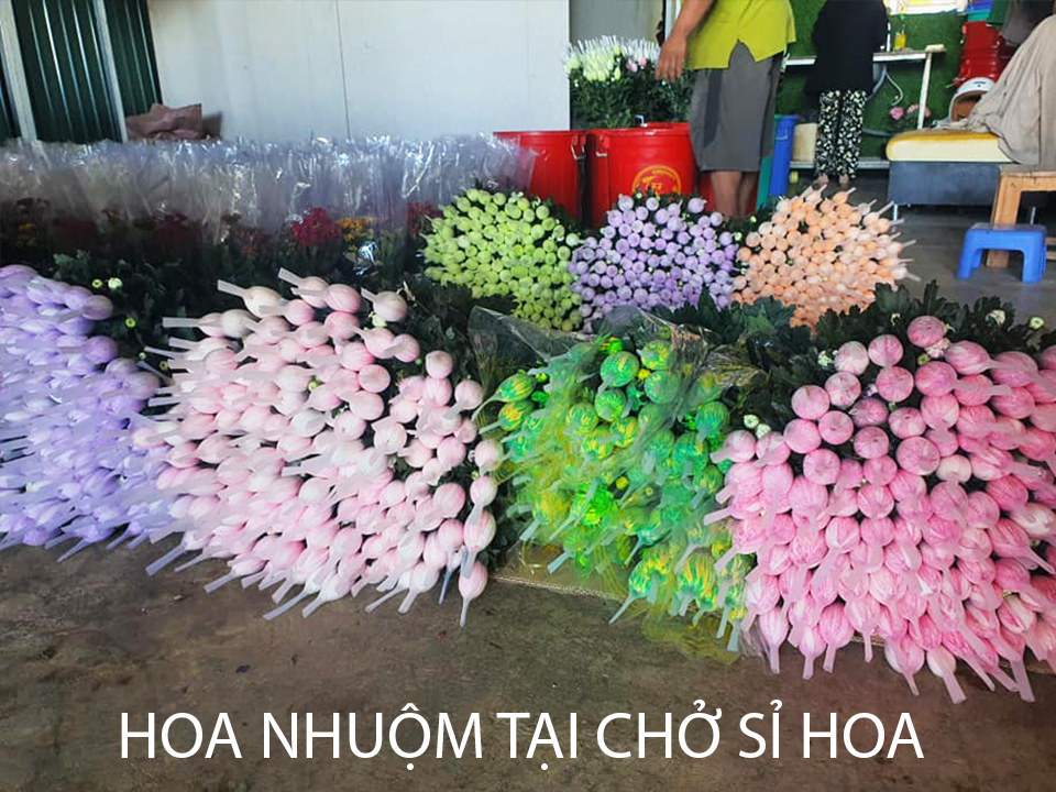 CHỢ SỈ HOA TƯƠI DÙNG NƯỚC NHUỘM HOA ĐỔI MÀU THEO CÔNG NGHỆ ISRAEL