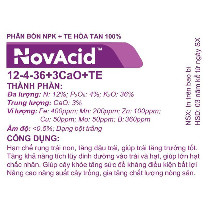 4. Hướng Dẫn Sử Dụng Phân Bón Lá NovAcid NovAcid 12-40-36+3CaO+Te