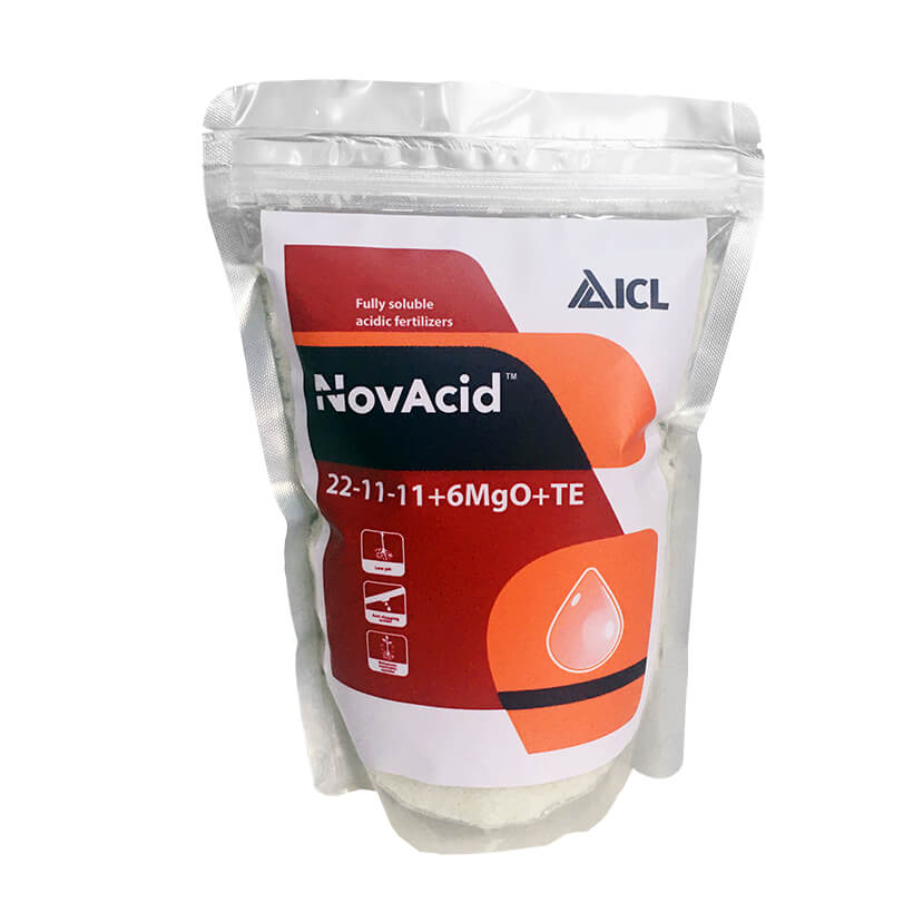 + Phân bón hòa tan NovAcid 22-11-11+6MgO +Te Là phần hoà tan 100%, được nhập khẩu hoàn toàn từ ICL – Israel