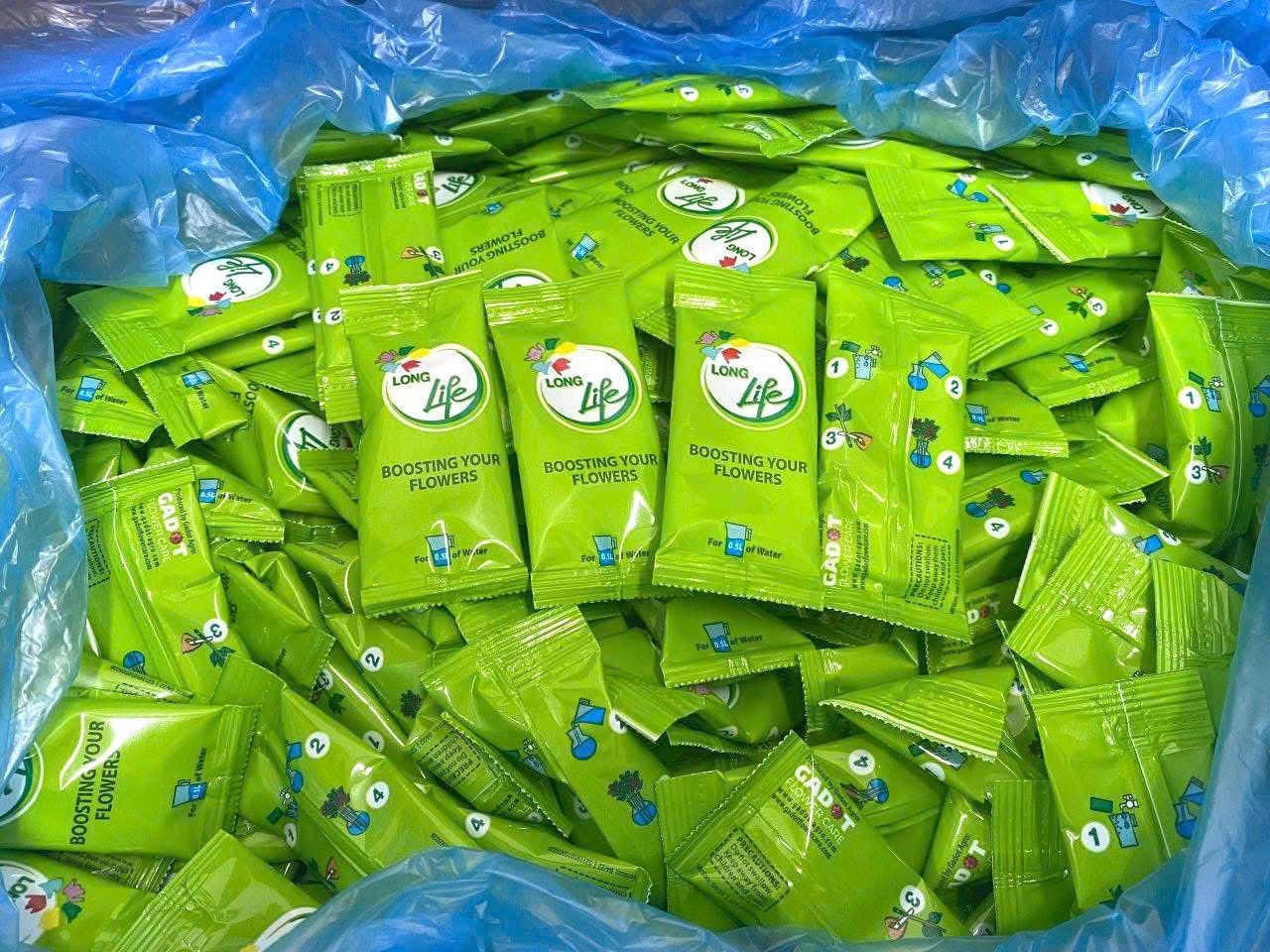 Bột Dưỡng Hoa Longlife SG Israel dạng gói nhỏ – giải pháp tối ưu dành cho chợ hoa sỉ, vựa hoa, shop hoa cần số lượng lớn để bảo quản và tặng kèm khách.
