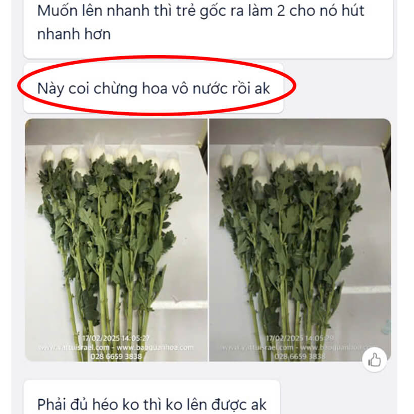 + Bước 1: Để hoa hơi héo nhưng không quá 4 giờ từ khi cắt (Tránh hoa bị suy kiệt)