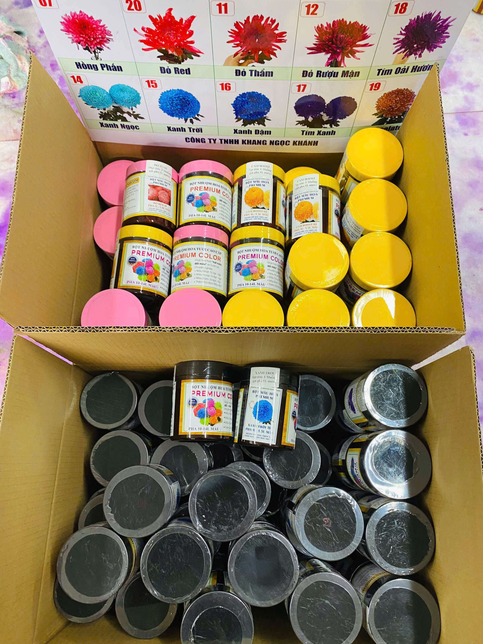 + Dạng bột màu hoa tiện lợi: Dễ hòa tan trong nước, bảo quản lâu, tiết kiệm chi phí so với nước màu nhuộm hoa tươi hoàn chỉnh