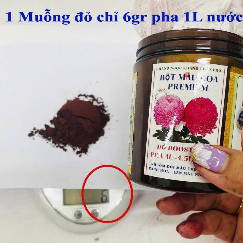 (Riêng bột nhuộm hoa Cam Lữa cần đậm sẽ dùng 12gr là muỗng đầy tràn để pha 1L nước màu)