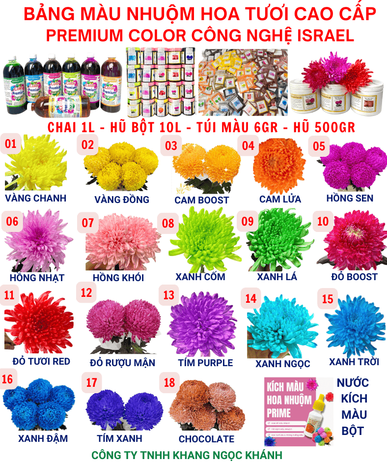 BẢNG 18 MÀU THUỐC NƯỚC NHUỘM MÀU HOA TƯƠI CAO CẤP NHẬP KHẨU CHUYÊN NGHIỆP VÀ AN TOÀN
