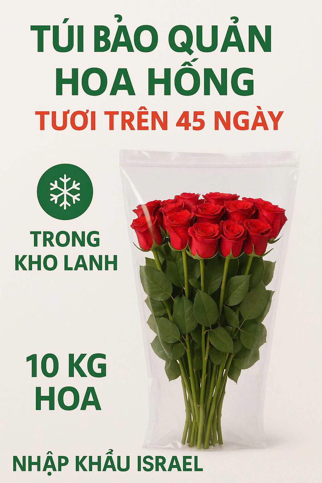 - Mỗi túi chứa được 8–10kg hoa, tiết kiệm chi phí và không gian.