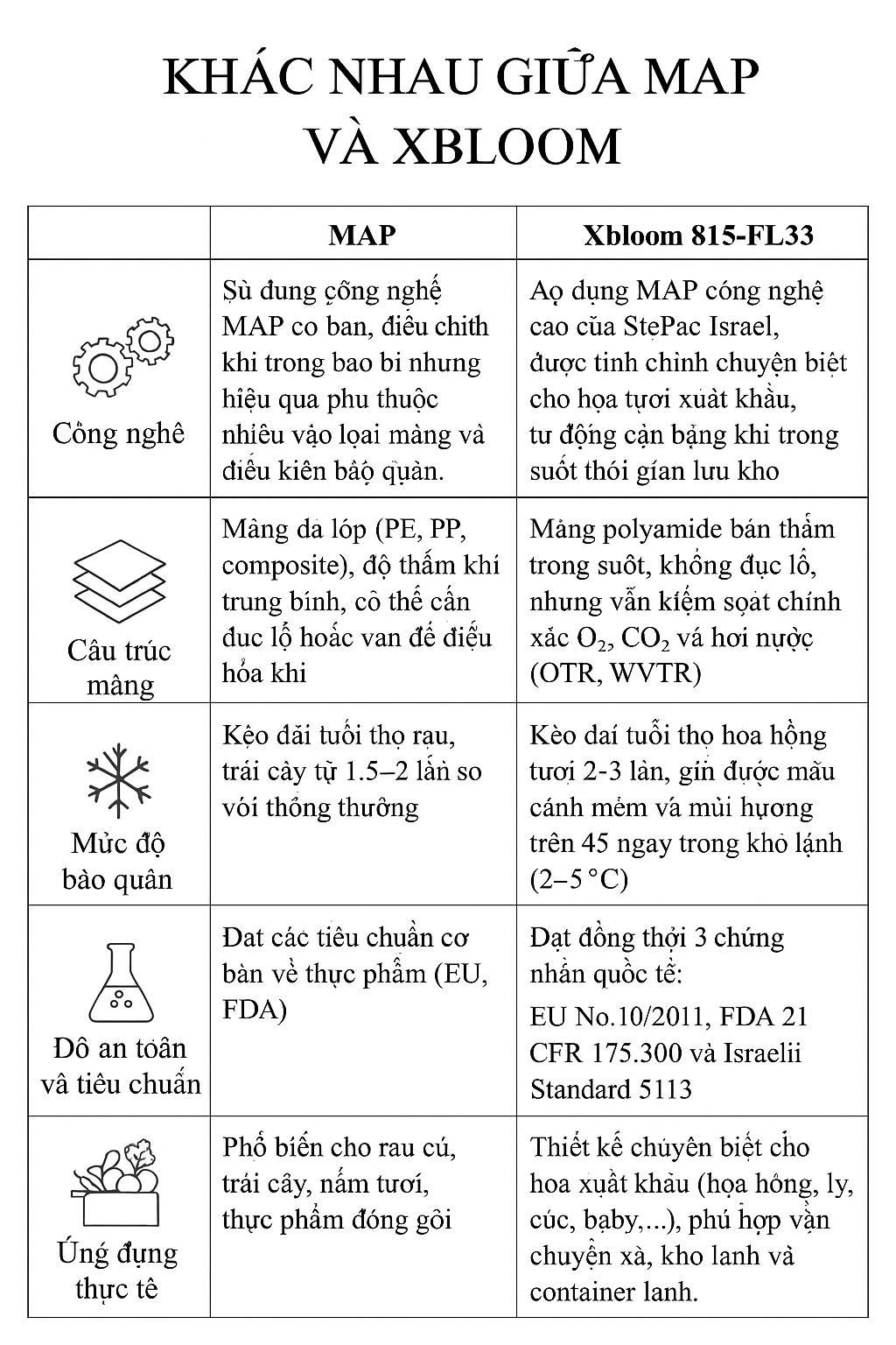 SỰ KHÁC BIỆT TÚI MAP BẢO QUẢN RAU SẠCH VỚI TÚI XBLOOM BẢO QUẢN HOA TƯƠI LÂU TỪ ISRAEL