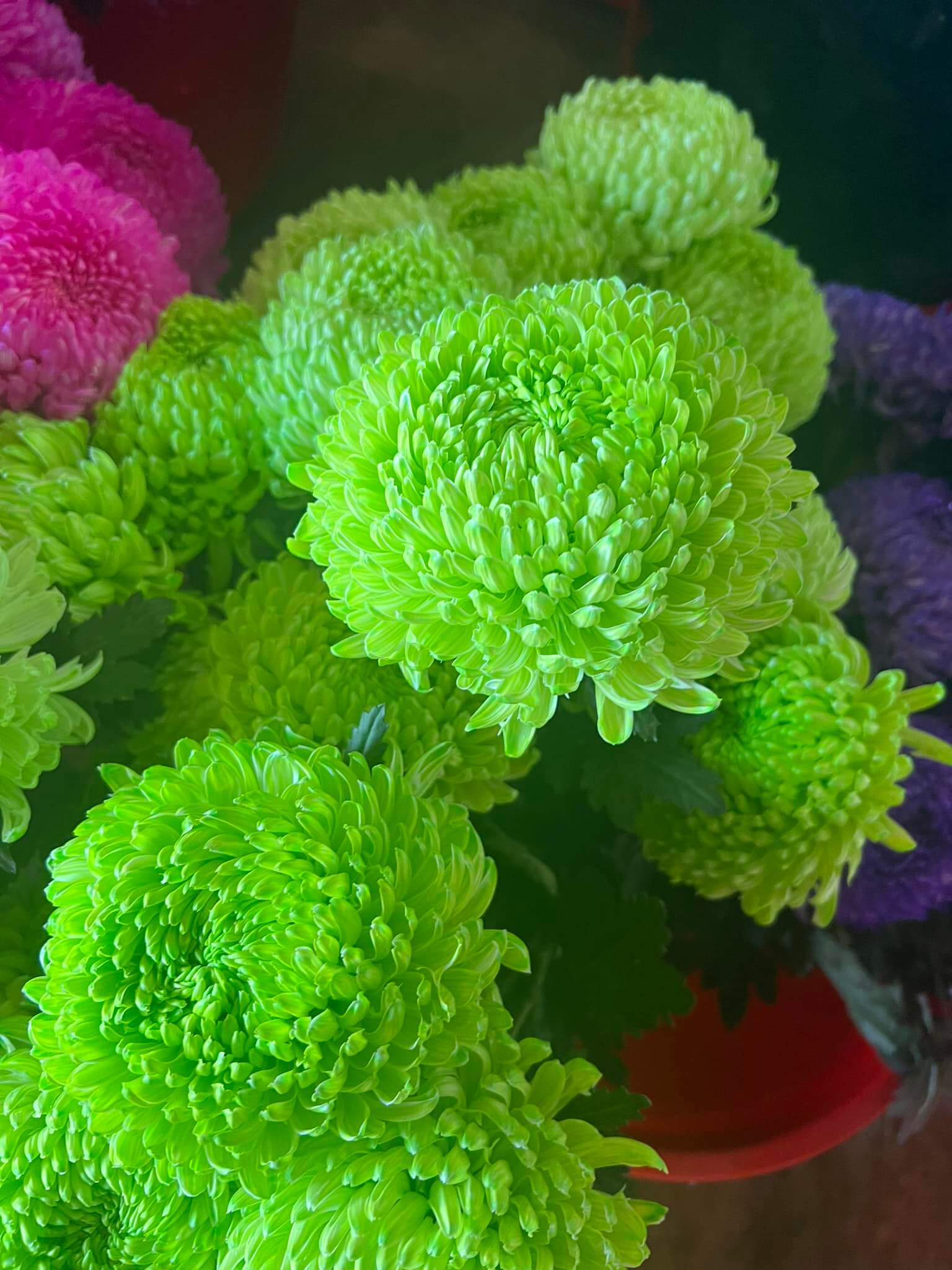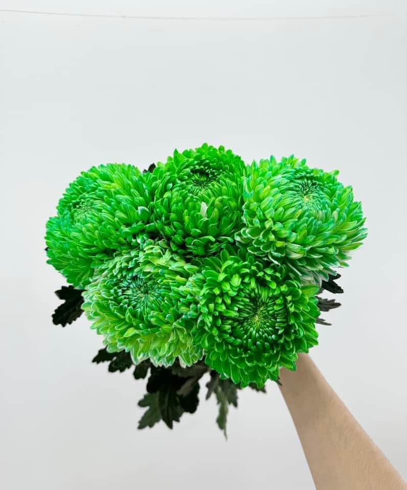 + Vì Cúc Mẫu Đơn thường mang vẻ đẹp thanh tao, nữ tính, nhưng khi được khoác lên màu xanh lá – một tông màu ít thấy ở hoa – thì nó trở nên mới mẻ và phá cách, gây tò mò và ấn tượng ngay từ ánh nhìn đầu tiên.