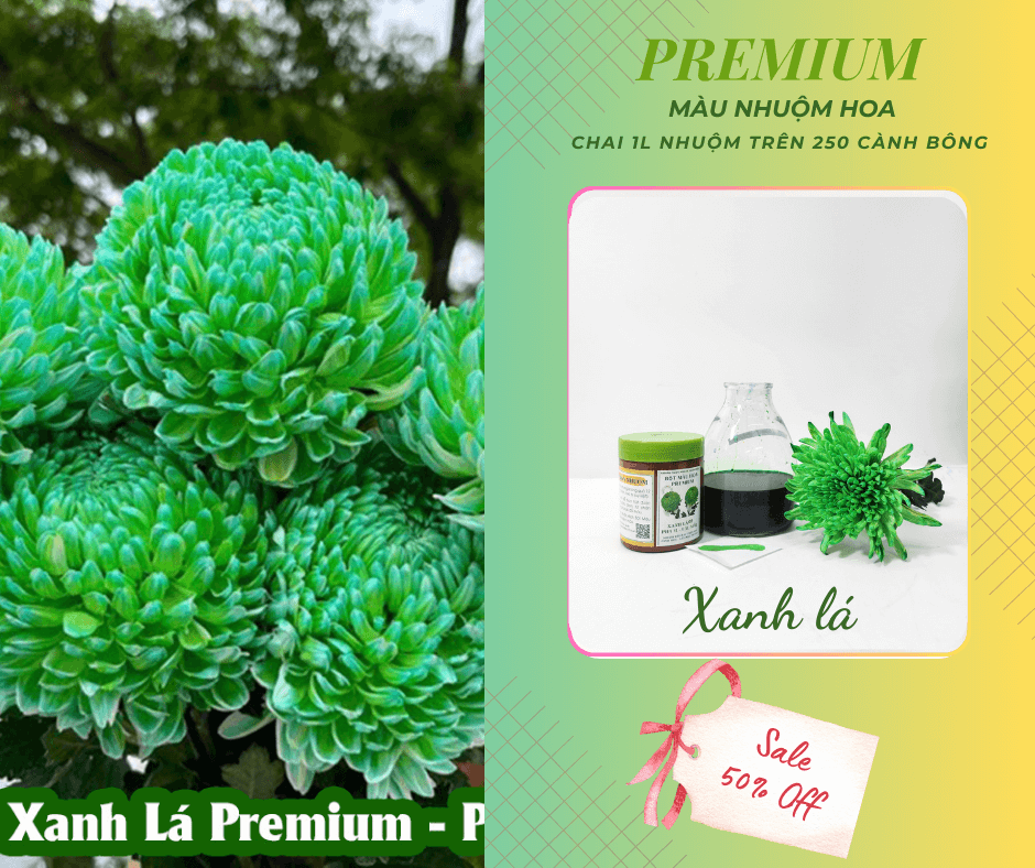 Nước Nhuộm Hoa Tươi Màu Xanh Lá giúp nhuộm hoa cúc trắng đổi màu. Vậy có nhuộm hoa cúc vàng đổi màu xanh lá được không? Hoàn toàn được
