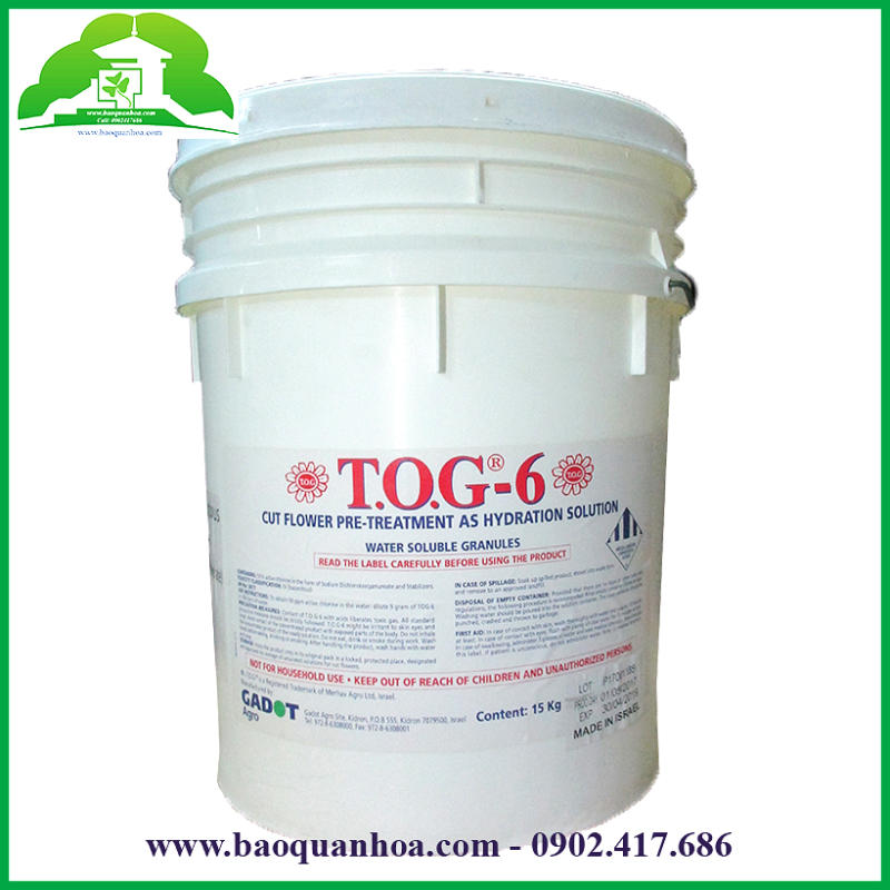 Trong số 12 dòng chế phẩm TOG thì TOG 6 là loại dạng BỘT, chứa thành phần CLO đặc trưng riêng cho hoa là chính yếu và tiếp theo là diệt vi khuẩn và cân bằng độ pH cho nước giúp hoa không bị nghẽn mạch