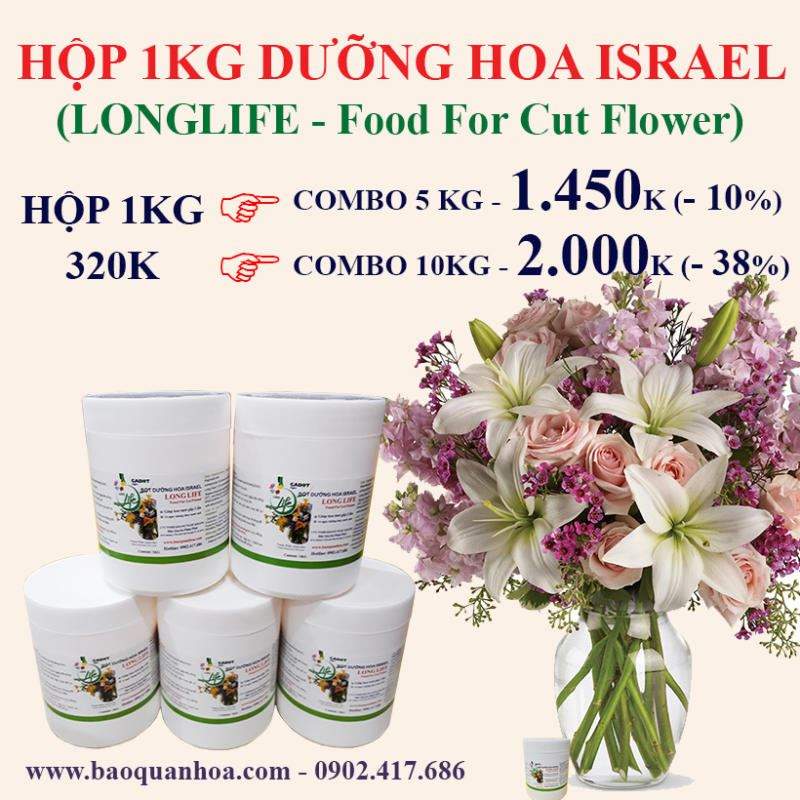 Chi phí cho dung dịch xử lý hoa Lan Vũ Nữ bằng Bột Dưỡng Hoa lâu tàn Longlife Israel là cực rẻ nếu không nói là “không đáng kể”. Trường hợp nhà vườn cần dùng số lượng nhiều, chúng tôi tư vấn Bột Dưỡng hoa dạng Hộp 1KG dành cho nhà vườn