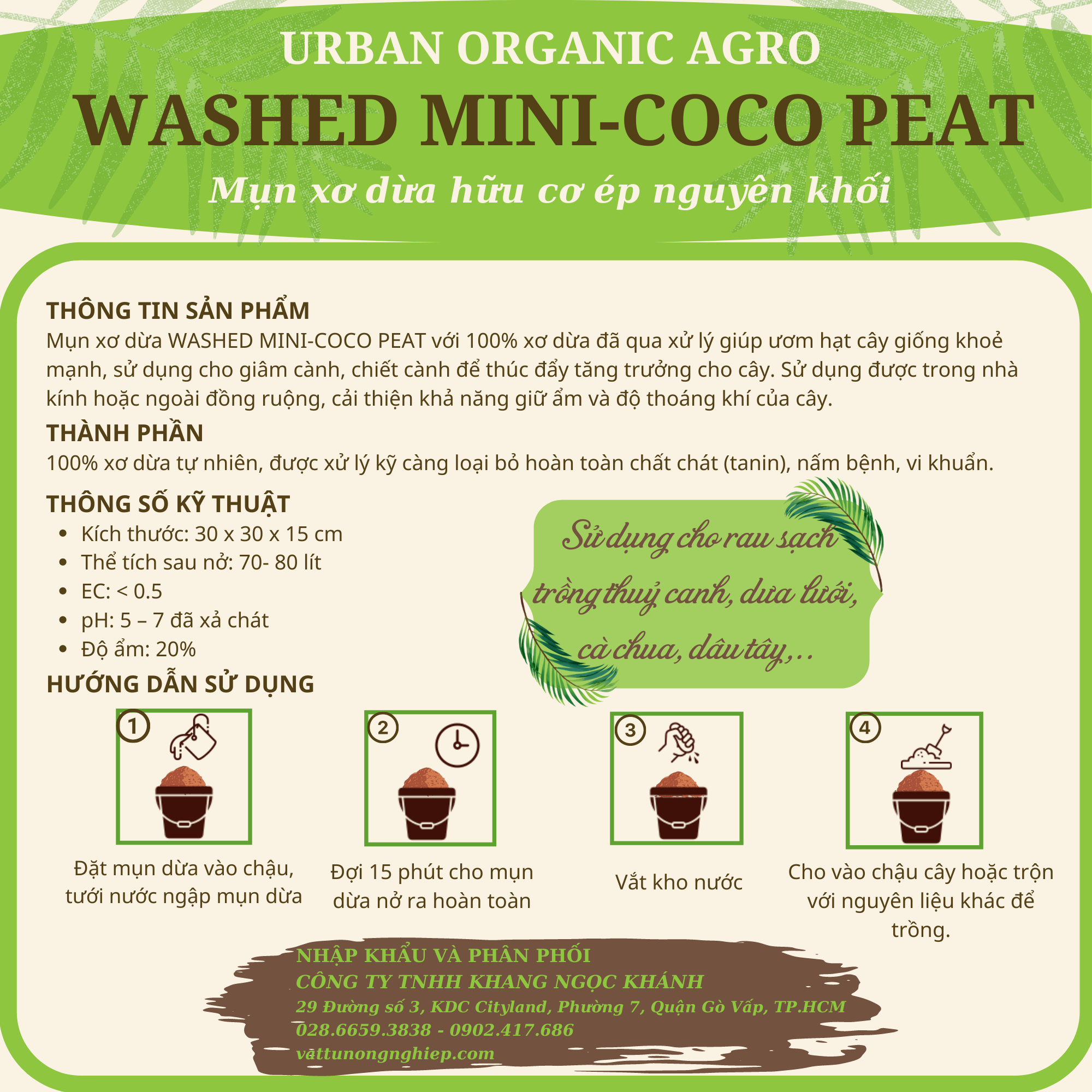 Mụn dừa đã qua xử lý Washed Mini-Coco Peat được nhập khẩu trực tiếp từ Ấn Độ với 100% thành phần xơ dừa tự nhiên.